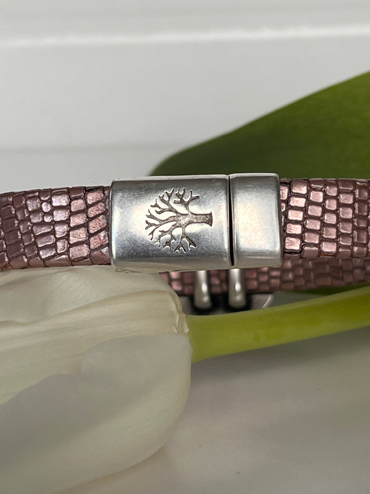 Rosa metallic armbånd med magnetlås. Sølvdetaljer