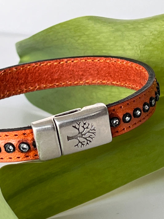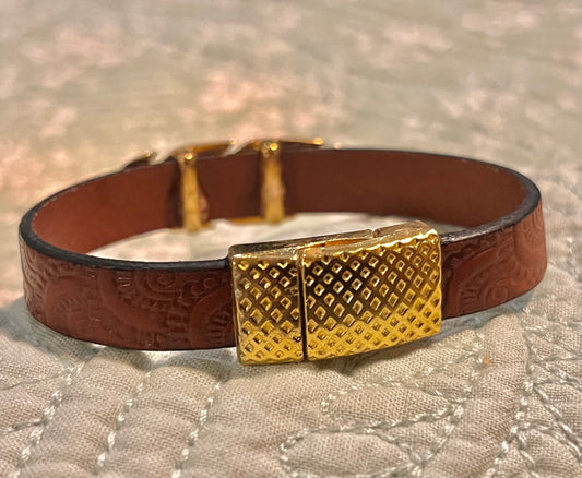 Cognaqfarget armbånd med magnetlås. Gulldetaljer