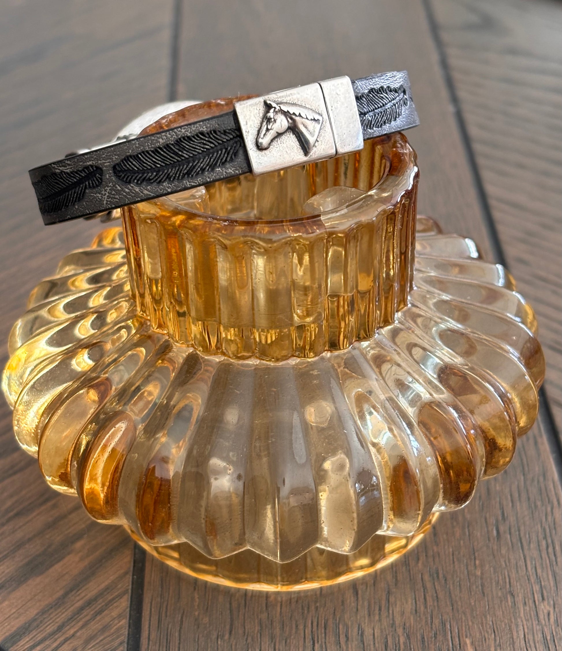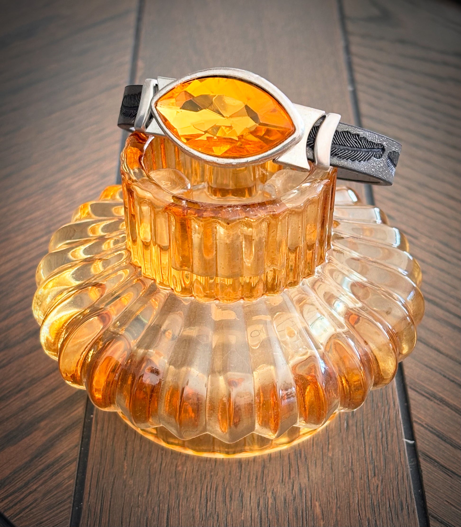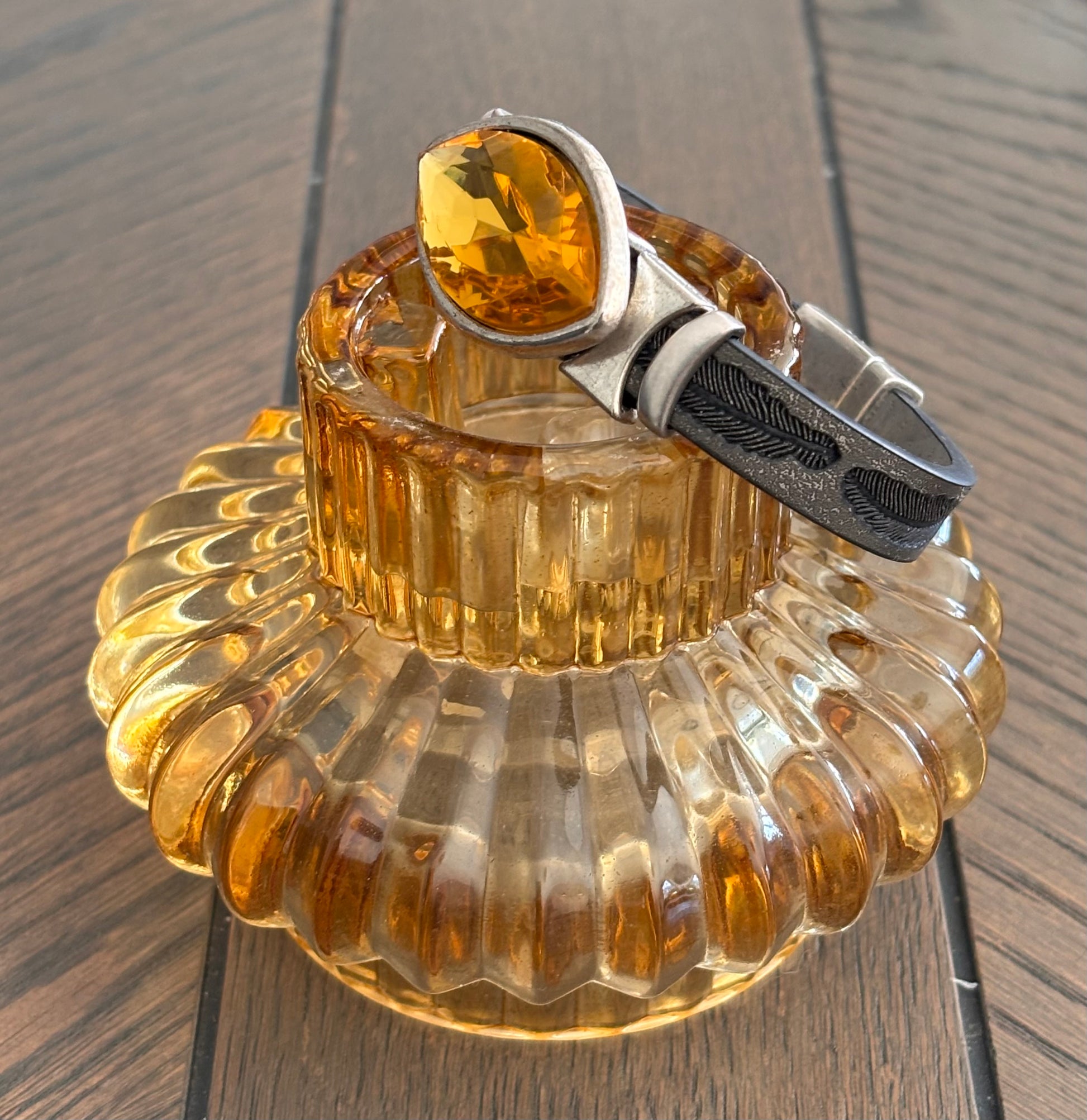 Grått armbånd med stort, gult anheng 🤩
